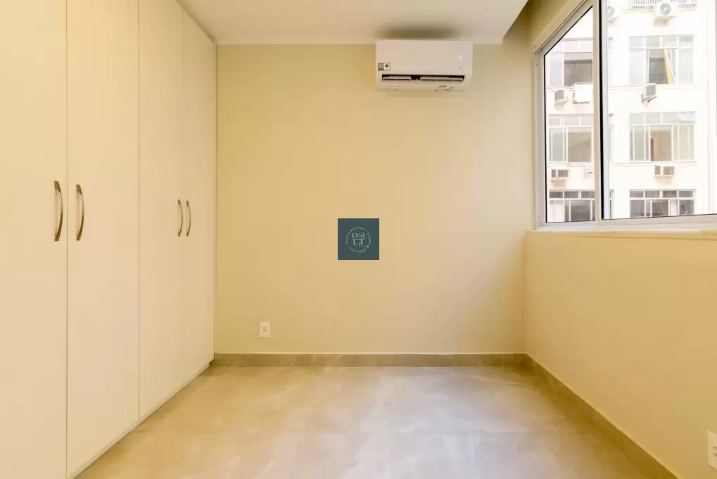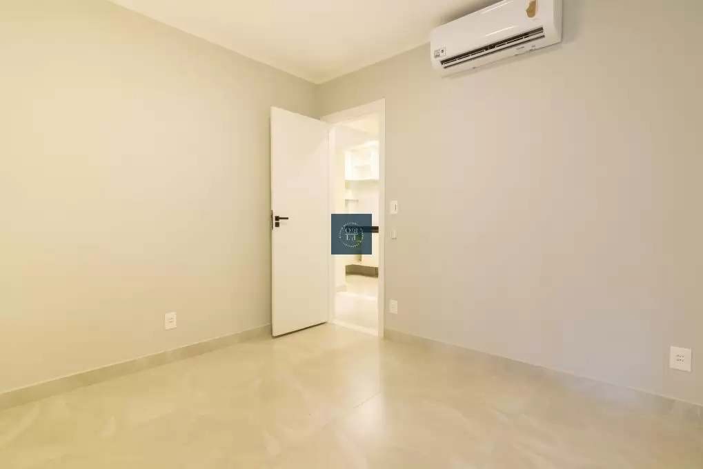 Os dois quartos amplos, também climatizados, recebem luz natural abundante e