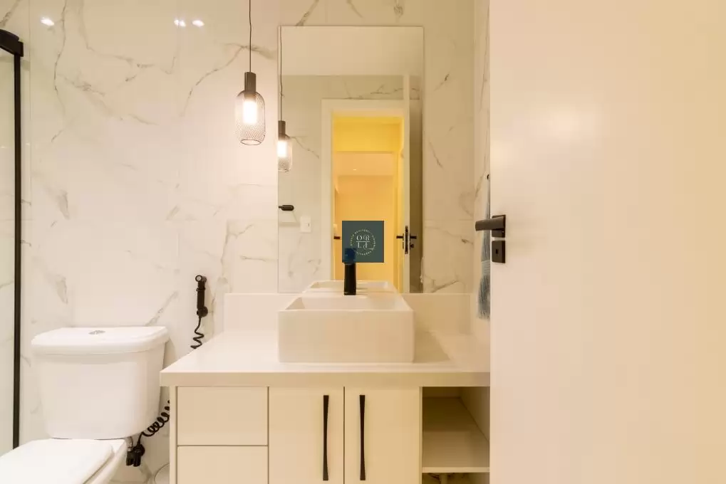 armários planejados, enquanto a área de serviço independente comporta sua máquina