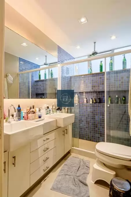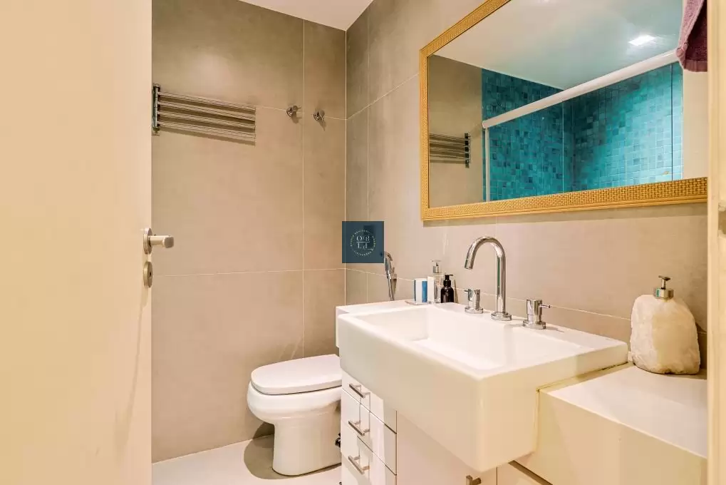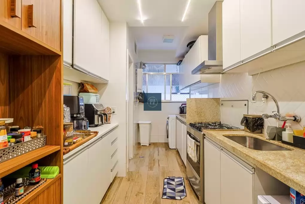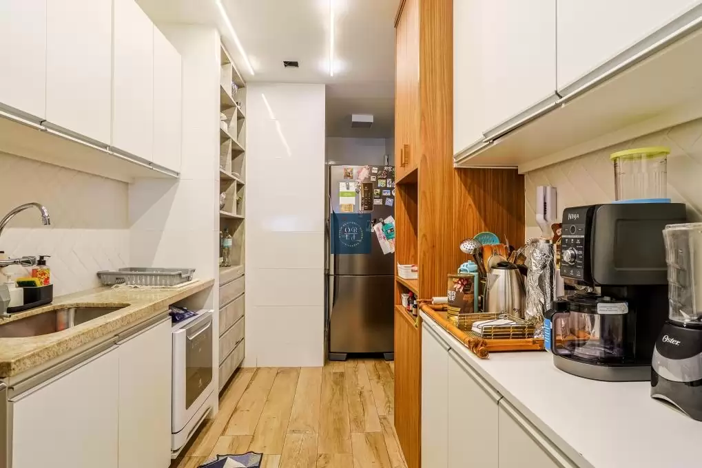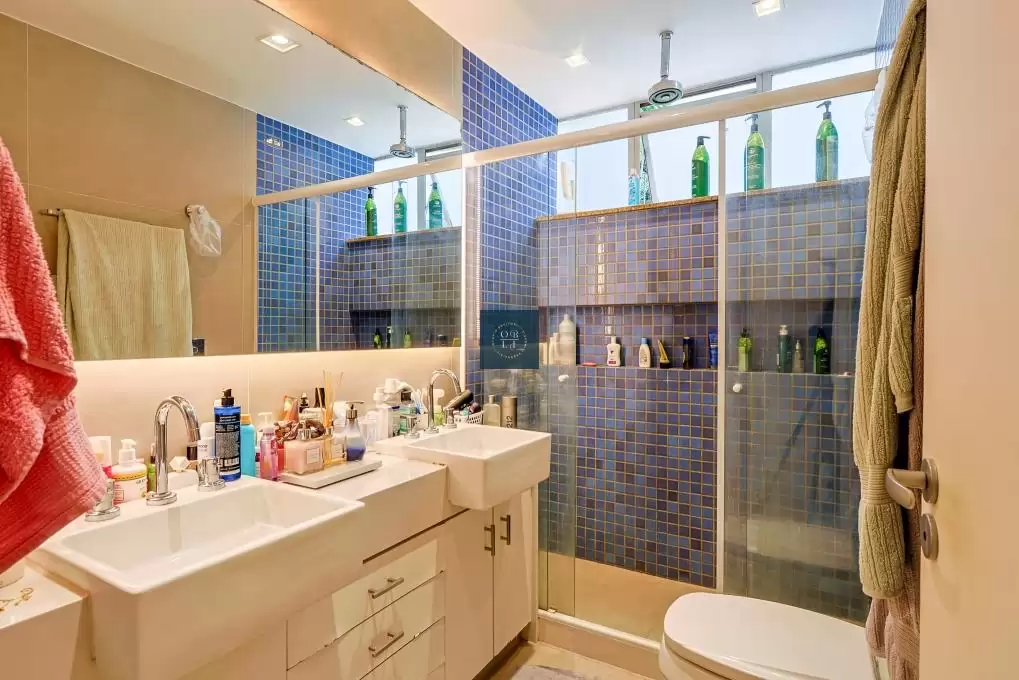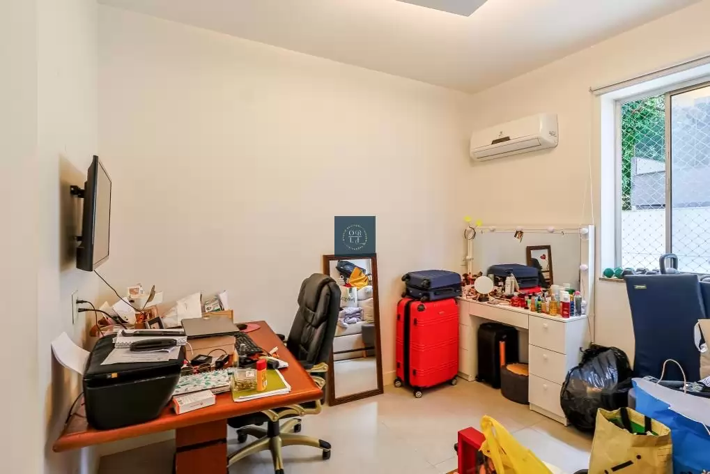 sala; 3 quartos, sendo 1 suíte; cozinha; 4 banheiros sociais; armários