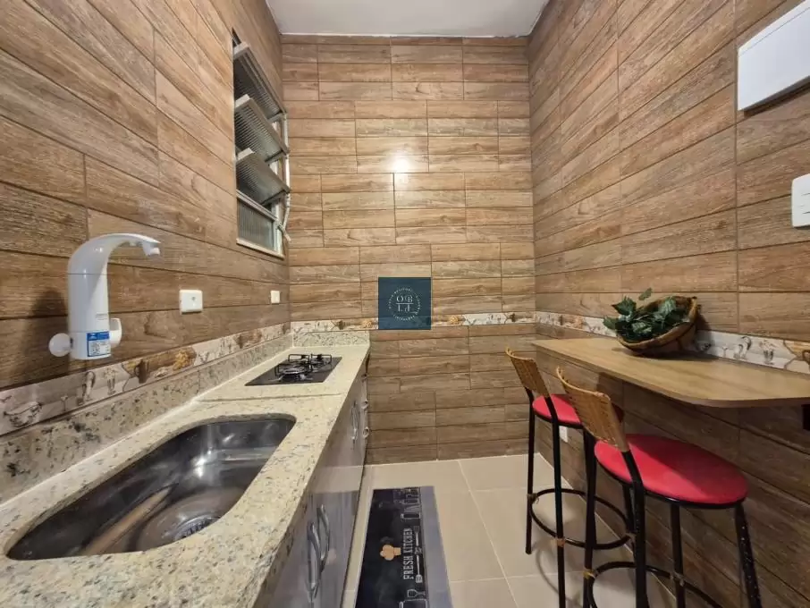 ? Cozinha renovada com bancada de granito e cooktop, ótimo