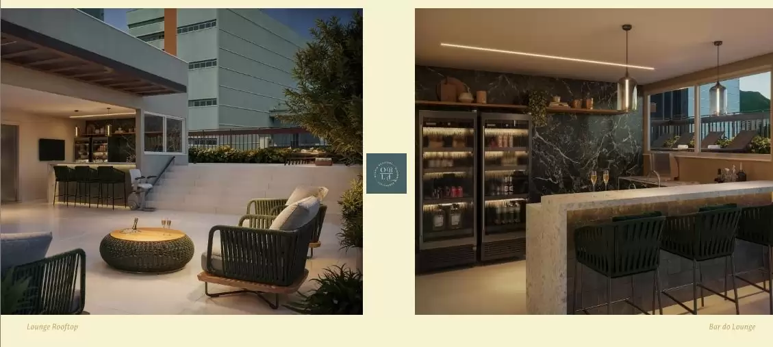 rooftop com piscina, sauna, academia, lounge e bar gourmet.